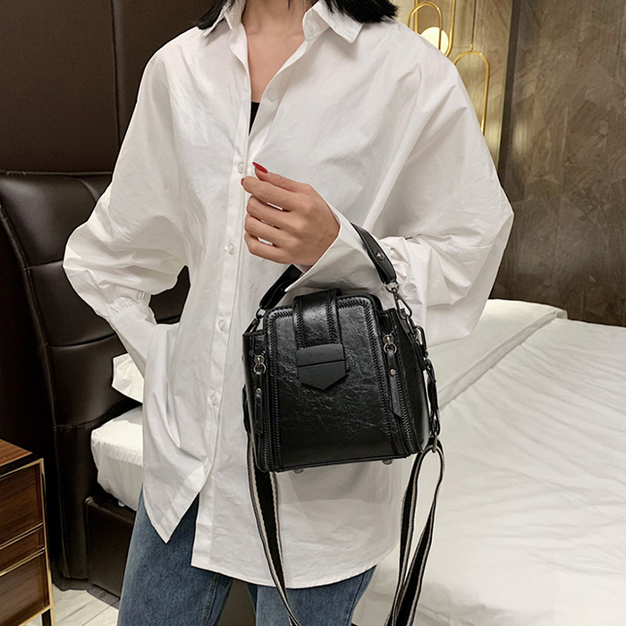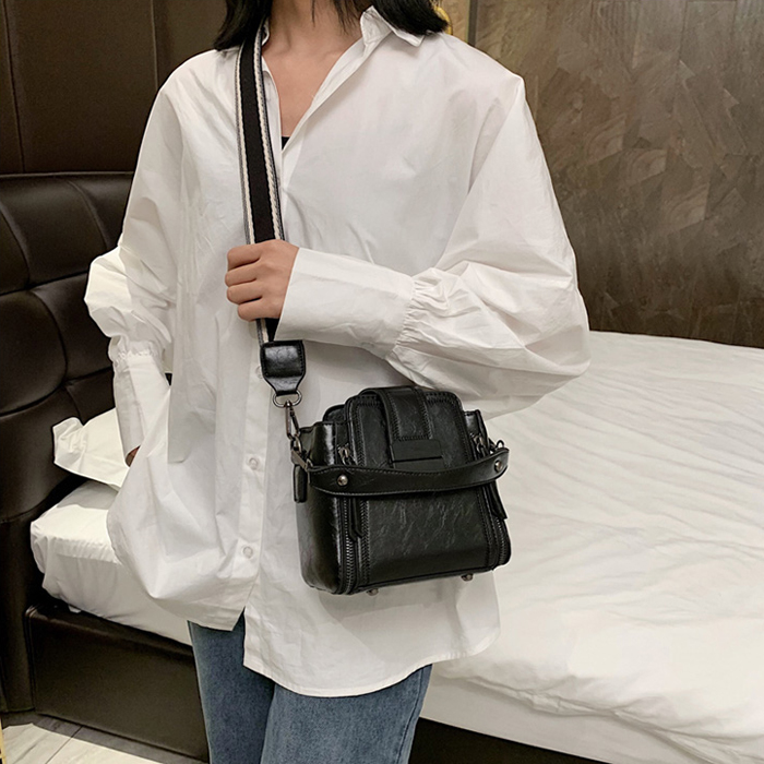 BAG6530 Black Tas Selempang Retro Tali Lebar