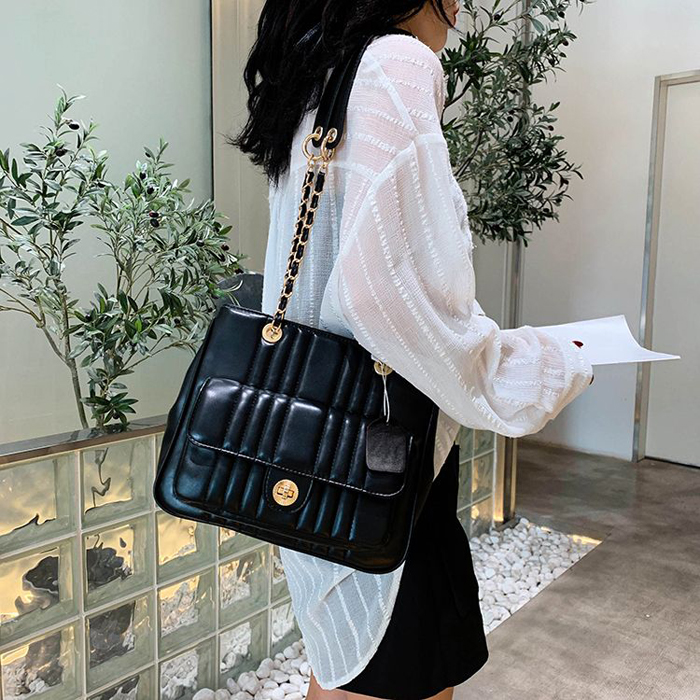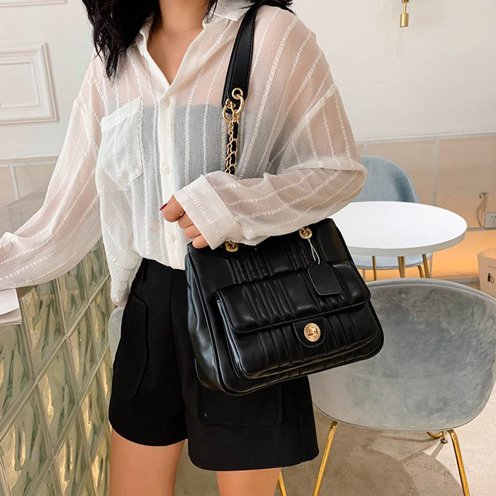 BAG6533 Black Tas Rantai Bordir Kapasitas Besar